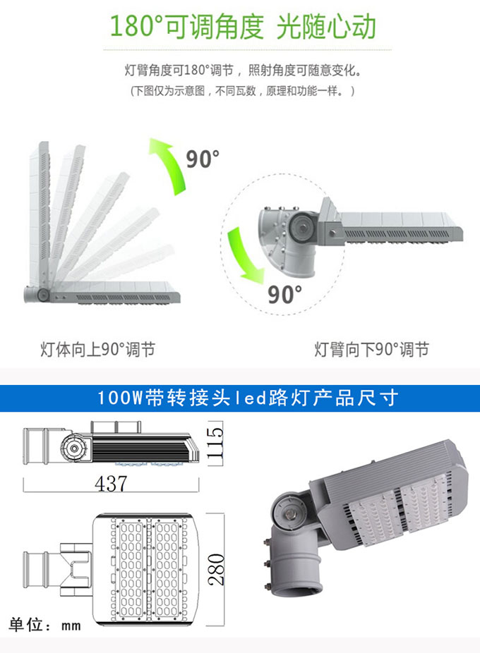 1. 燈臂角度可180°調(diào)節(jié),照射角度可隨意變化