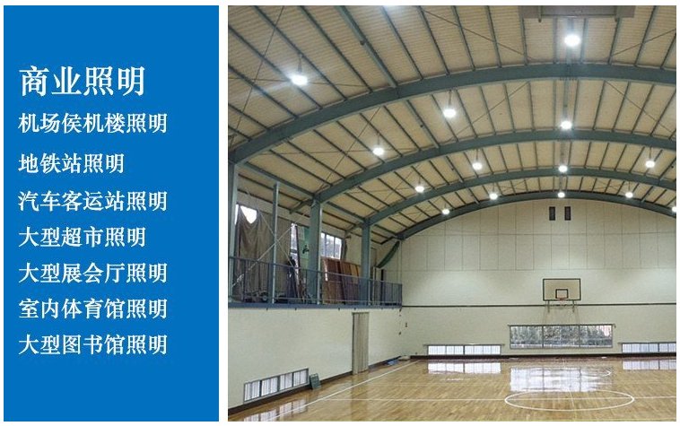 車間、倉庫、廠房、體育館、商場、會展中心等照明。