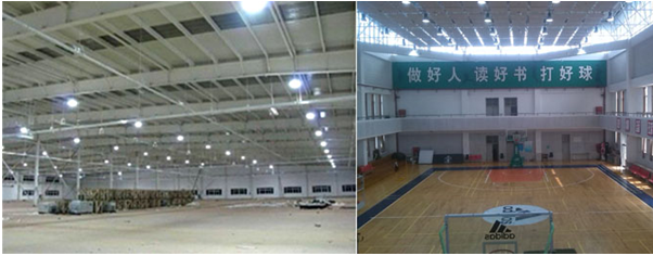 以廠房和場館LED工礦燈的安裝為例。我司首先采用寬度為5cm的鍍鋅板將鋼管固定在廠房的鋼梁上,然后用同樣規(guī)格的鍍鋅板將燈具固定在鋼管上,這樣鋼管就可以完成支撐起燈具的重量。同時,采用鋼絲繩穿過LED工礦燈固定鐵環(huán),將鋼絲繩固定在頂棚的鋼梁上,形成雙保險措施。